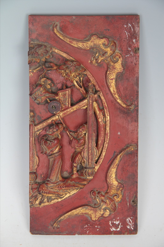 清金漆木雕双蝠人物纹绦环板