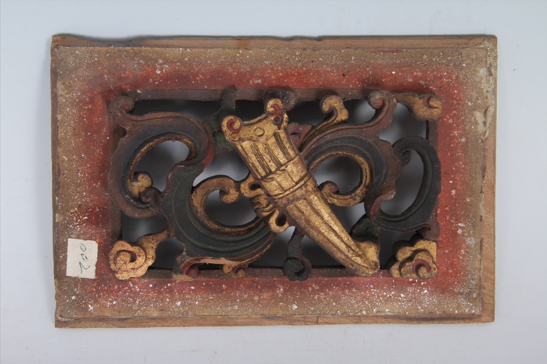 清金漆木雕八宝之伞纹绦环板